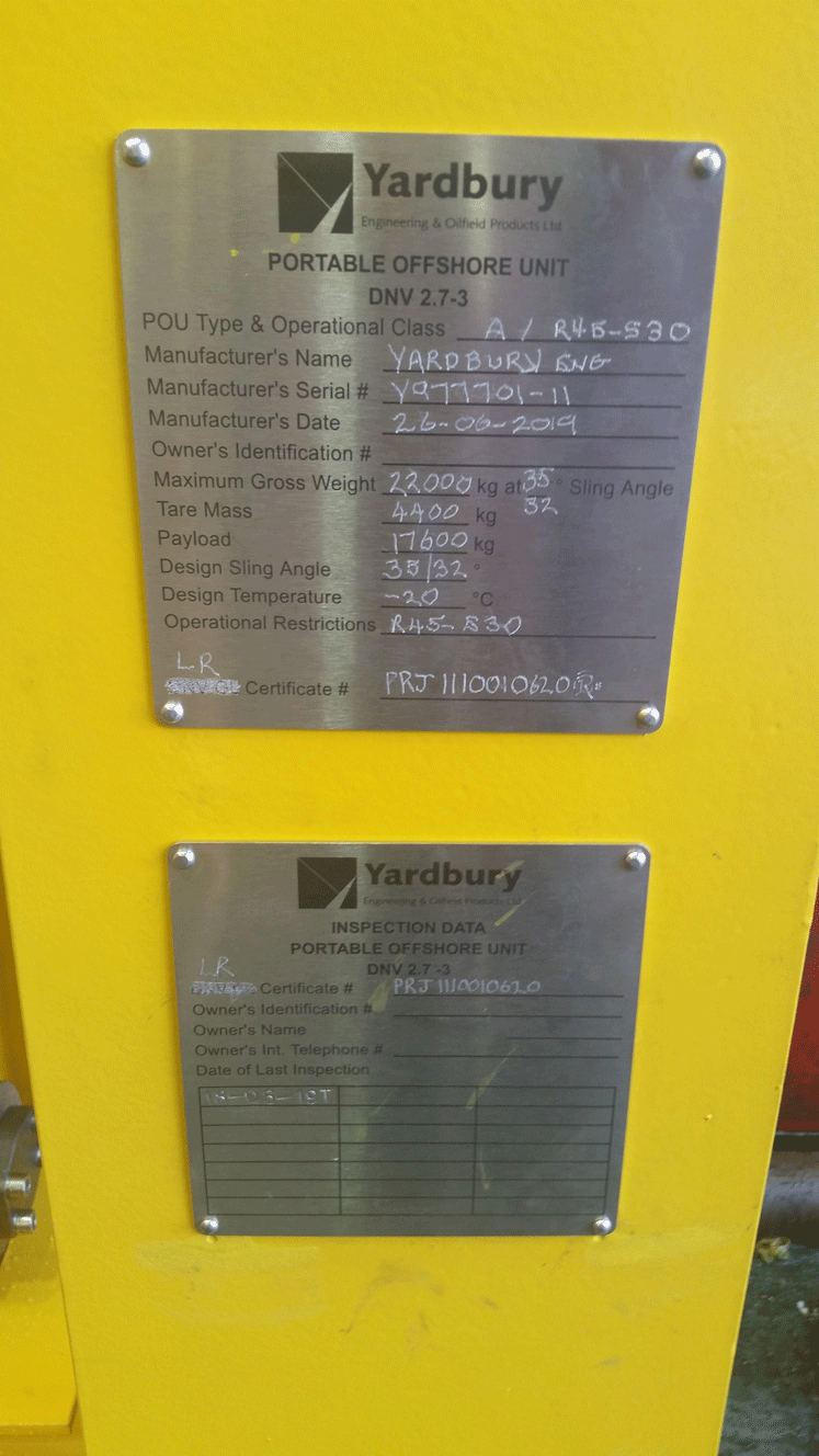 Model: | 50 bottle subsea accumulator. Yardbury. DNV 2.7 -3 |