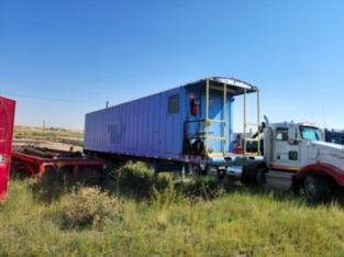 Skidded 5,000 gallon fuel tank with 10’ porch. 3 compartment lubester, storage cabinet.