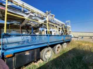 Two 8,000 lbs capacity Braden Hydraulic winches substructure. 10’ H x 10’6” W x 25’ L. T-type substructure with two 5 ft wide folding walkways. 50” H x 10’6” W x 40’ L back on ramp.