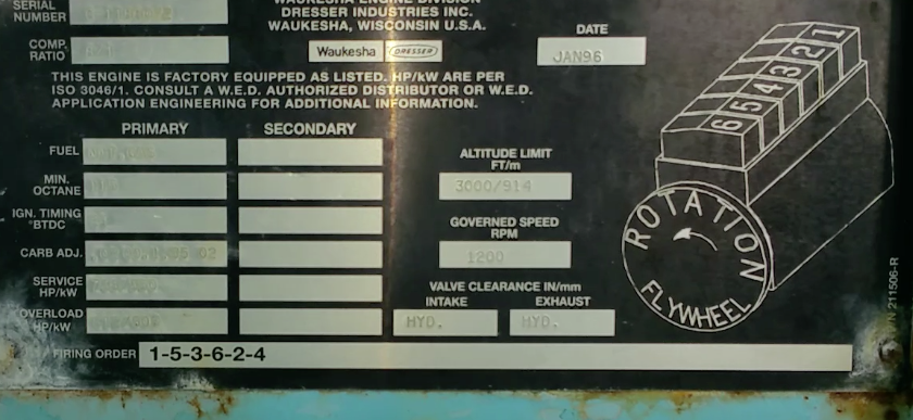 | Model: | Ariel JGK-4 compressor Waukesha 7042 natural gas engine |