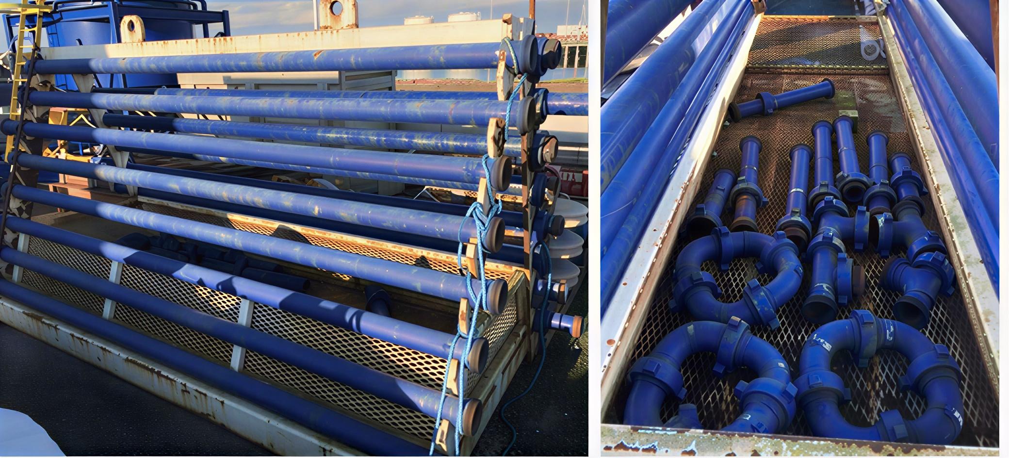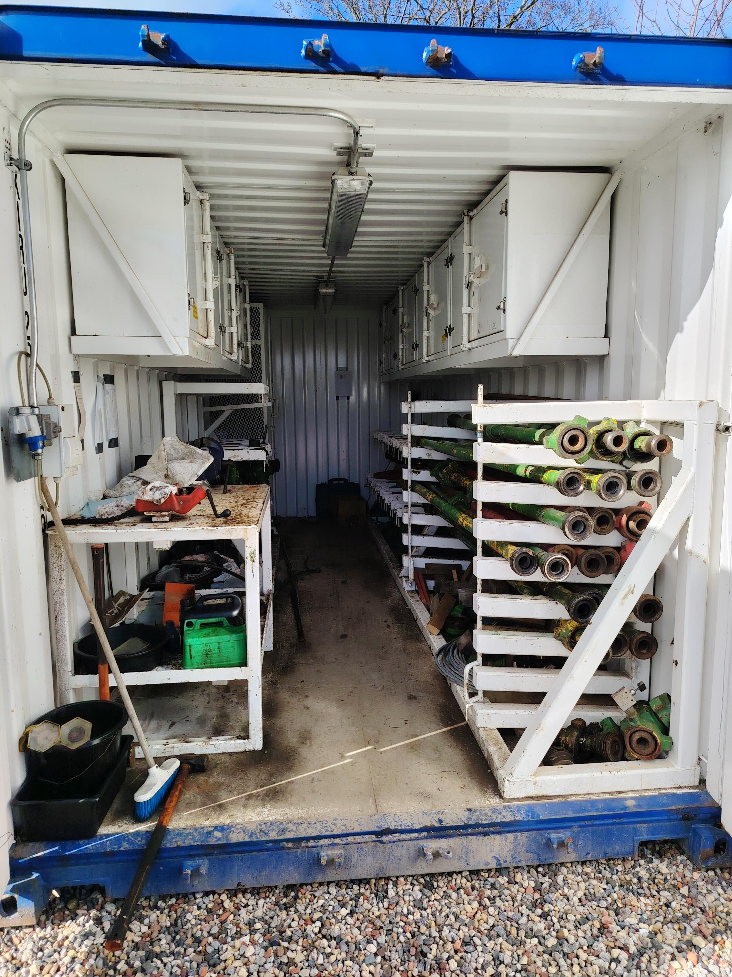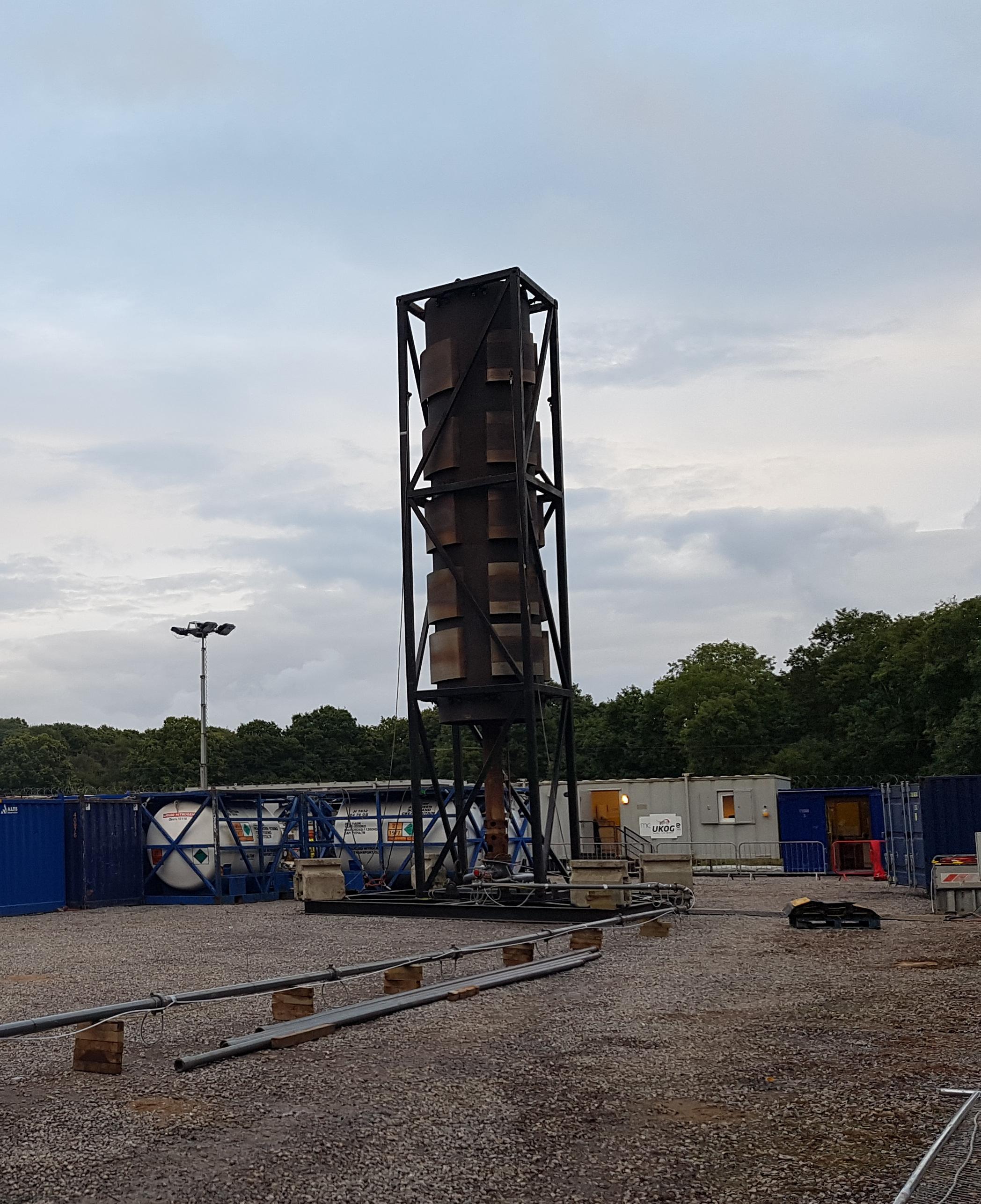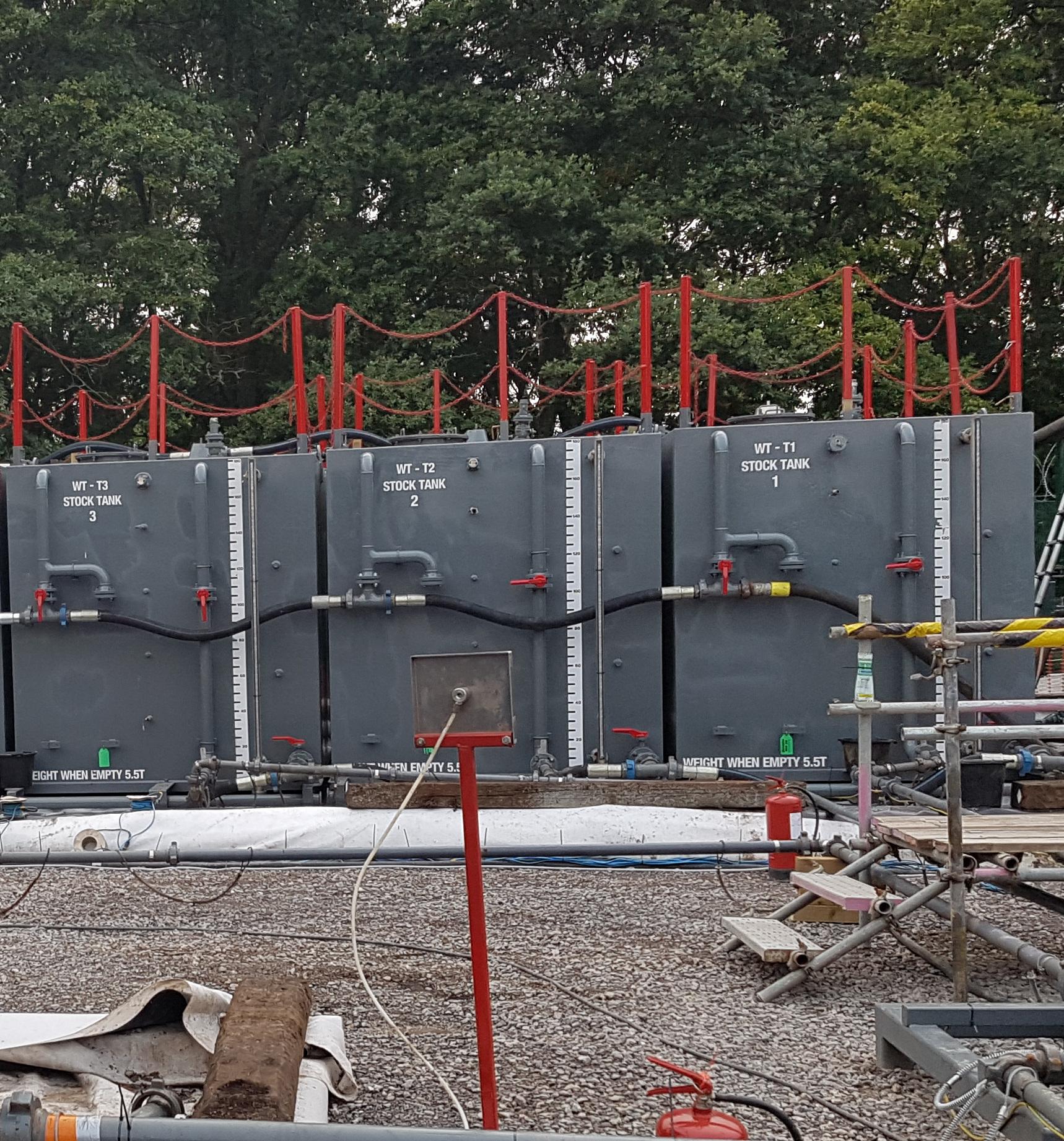Complete well test package. Includes containerised four-phase separator, containerised horizontal three-phase separator with line heater, containerised workshop/iron stores, Containerised spares stores, 32ft office/cabin, frame mounted 2” 10k debris catcher, A-frame flow line rack, frame mounted surface safety valve, frame mounted well test choke manifold, ground flare, miscellaneous spares and monitoring equipment, 3 x 180 bbl test tanks, plus more