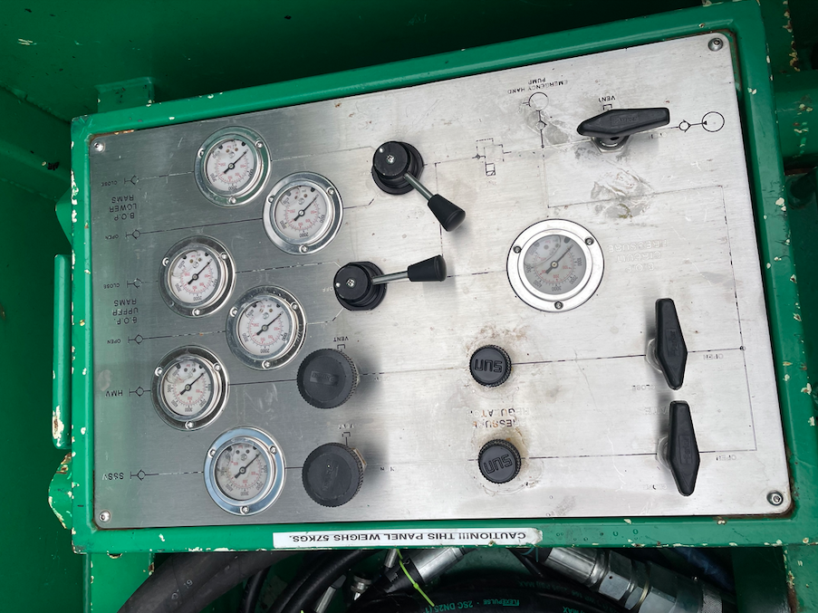 Unit comes with a basket for hoses, power pack runs its own well control panel for BOP's, Tree valves, Subsurface safety valve and also comes with a backup hand pump which is neatly packed away inside the basket.