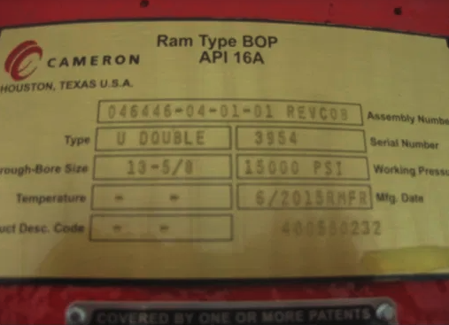BOP, DOUBLE, Cameron Type U, 13-5/8 15K Flange Top X Bottom with Four 4-